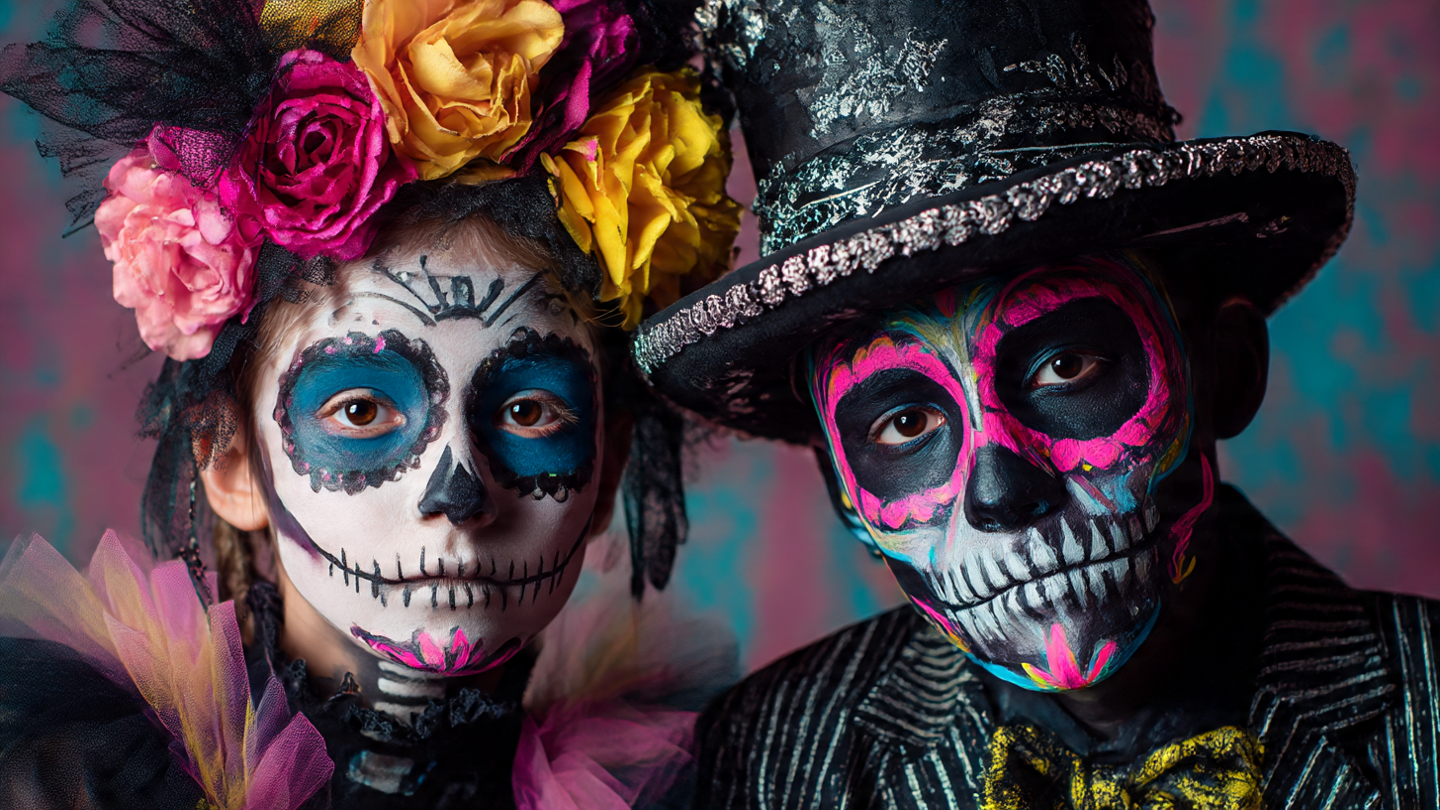 Según la costumbre, el disfraz no se usa para asustar, sino para conectar. En los panteones, entre velas y flores de cempasúchil, se ve a familias enteras disfrazadas. Los niños, con calaveritas sonrientes; los adultos, con trajes que narran su historia familiar. Todos conviviendo con los que ya se fueron, como si el más allá fuera un barrio más de la ciudad.